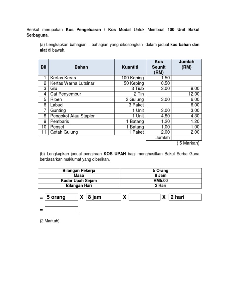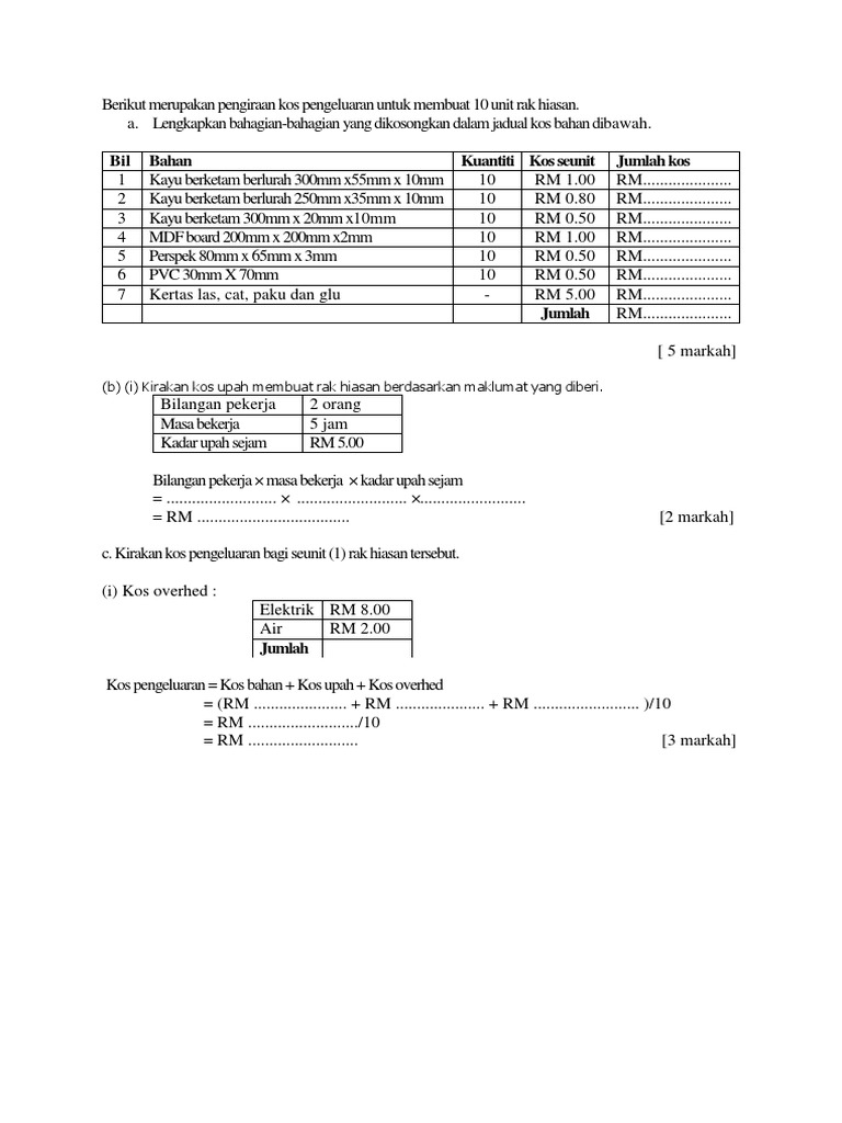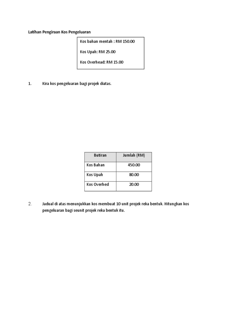 Latihan Pengiraan Kos Pengeluaran Pdf
